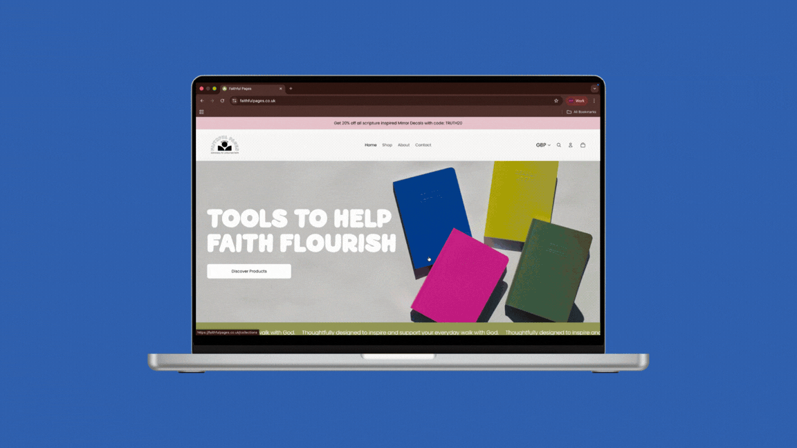 Faithful Pages needed a clear, understated brand that could sit naturally alongside founder Lydia’s vision: bold, minimalist products designed to fill a gap in the Christian Stationery market.